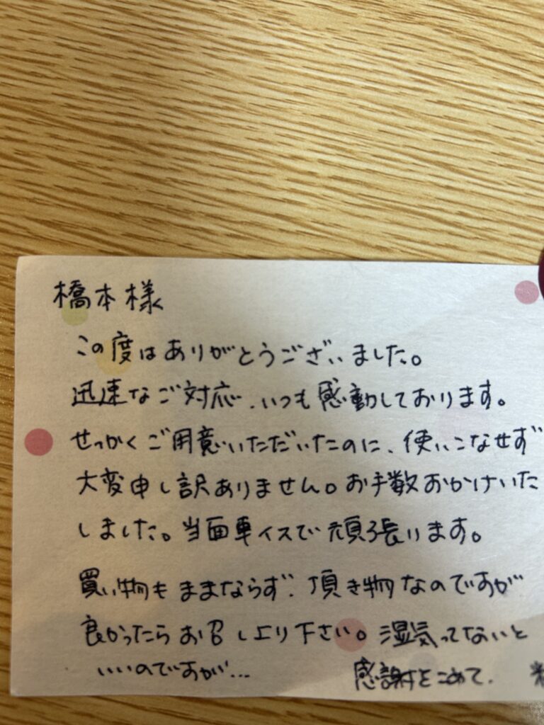 このようにお手紙や直接お礼の言葉をいただくとやっててよかったなと感じます